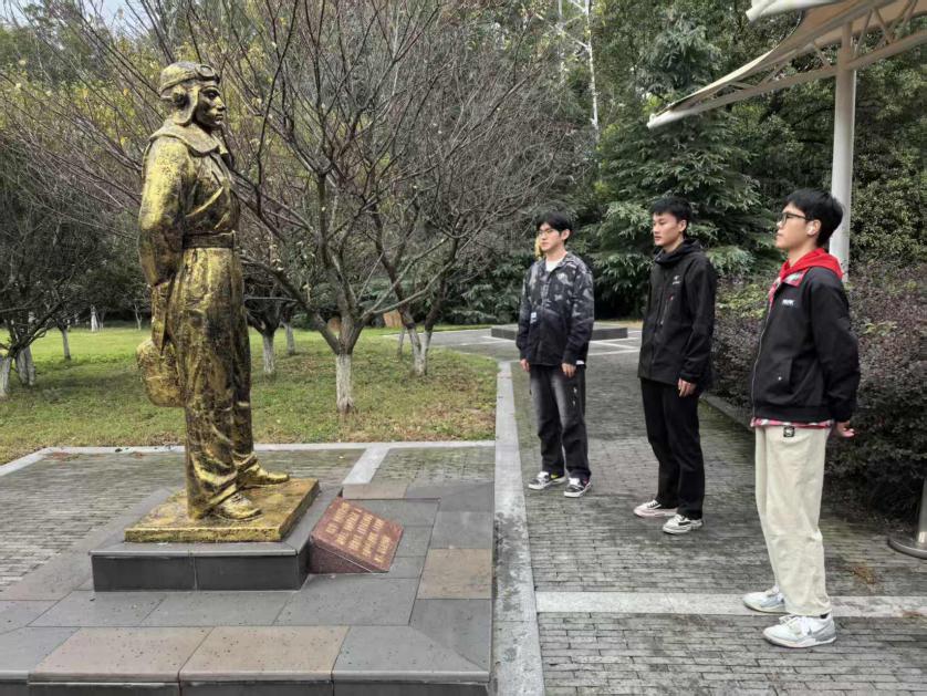 活动伊始,支部成员在主展厅认真观摩了飞行服、飞机残骸等珍贵历史文物。透过一件件实物,成员们深切感受到民族复兴道路上的艰辛与辉煌。随后,全体成员在飞机雕塑旁驻足默哀,以肃穆的姿态表达对为国防事业英勇献身的革命先烈的崇高敬意与深切缅怀。在抗日航空烈士纪念碑前,团支书孙宏宇带领大家回顾了从抗日战争到抗美援朝的峥嵘岁月。全体成员更加深刻地理解了这场战争在“打出国威、捍卫和平”方面的重大历史意义。