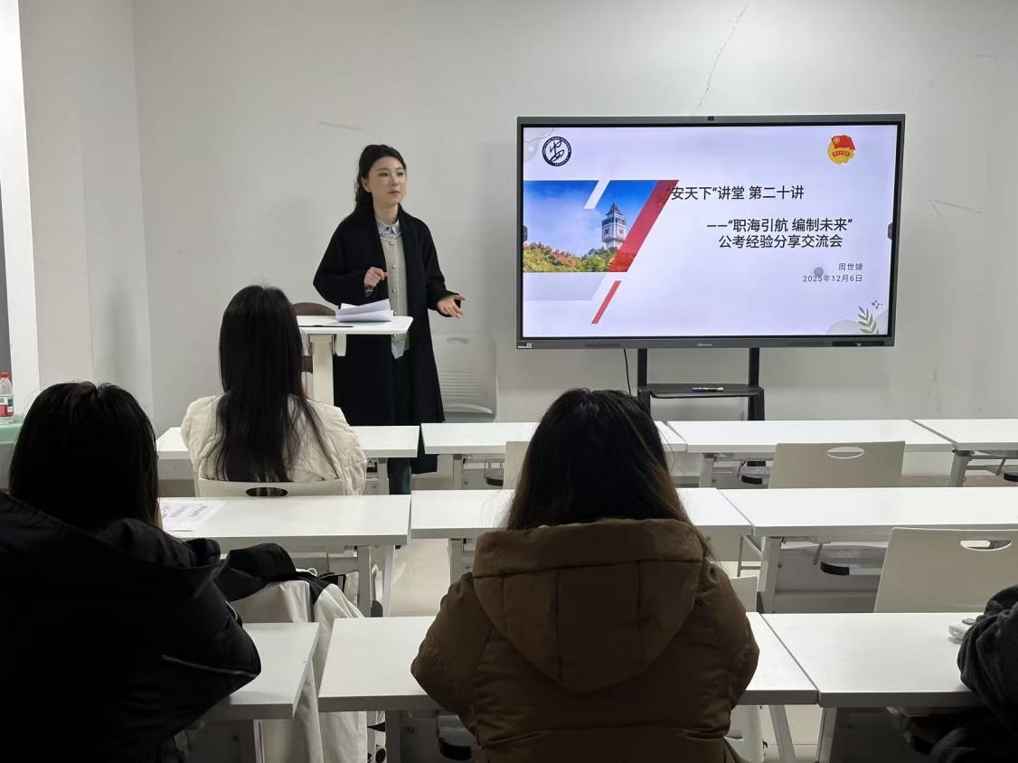 本次交流会不仅为有志于投身公共服务的学子搭建了答疑解惑、汲取经验的平台,也体现了学院对员工职业规划与就业指导工作的高度重视。未来,安全学院团委将继续整合资源,深入开展“安天下”系列分享活动,助力学子从容步入职场、筑梦未来。