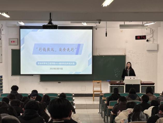 为引导员工锚定成长目标、积蓄发展动能,3月13日下午,太阳集团tyc86于厚学楼200召开“行稳致远,安全先行”2023级本科生年级大会。本次会议由辅导员钱露老师主持,2023级全体本科生参会。